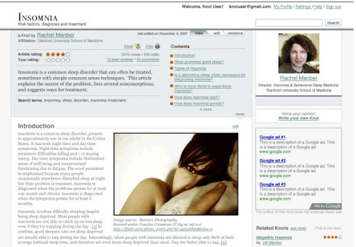 Google cree que muchos no comparten sus conocimiento porque no es sencillo hacerlo, problema que pretenden solventar con Knol, cuyo objetivo es alentar a las personas que saben de un tema en particular para que escriban un artículo sobre él con autoridad.